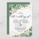 Este é um belo convite de casamento com flor de eucalipto com design de forma geométrica dourada.