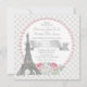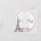 Convite de casamento de Paris com belas pérolas cor-de-rosa e rosas rosa e branca antigas e Torre Eiffel em um fundo de damasco elegante. Você pode personalizar facilmente esses convites de casamento de Paris no Campo Francês para o seu evento, simplesmente adicionando seus detalhes no estilo de letra e redação de sua escolha. Este é um design impresso sem pérolas reais.