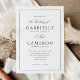 Convite de Casamento em Preto e Branco com Caligrafia de Letra Elegante Moderno apresenta uma letra elegante, combinada com um tipo bonito e uma moldura delicada.