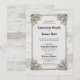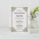 Um convite de casamento emoldurado em madeira esculpida rústica e ornamentada com uma atmosfera vintage usando texto em Inglês Antigo para apresentar os nomes dos noivos. Este é um convite detalhado que inclui tanto os locais da cerimônia quanto da recepção. Este convite inclui um pedido de RSVP na parte inferior para lembrar os convidados a confirmar sua presença junto com um aviso de RSVP na parte inferior para lembrar os convidados a confirmar sua presença.