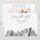 Convite de save the date moderno em preto e branco de Sacramento. A frente mostra um esboço impressionante, definindo o tom perfeito para o dia do seu casamento. Adicione sua própria foto no verso e personalize o texto para torná-lo seu. Entre na ferramenta de design Zazzle para personalizações adicionais de design.