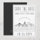 Um convite de casamento único para salvar a data, para um casamento que acontecerá na bela cidade de Savannah, Geórgia. Este convite apresenta uma ilustração estilizada da silhueta única da cidade com seu nome abaixo. Isto é seguido pelas informações do seu dia de casamento em um estilo aberto correspondente. No verso do convite há uma cor cinza escuro para complementar a aparência e o sentimento. Todos os elementos individuais do cartão de convite são desbloqueados para que você possa alterar quaisquer detalhes necessários, como tamanhos de fonte, estilos e muito mais, usando a função de personalização. Você pode adicionar uma foto no verso e aplicar um filtro preto e branco a ela. Divirta-se sendo criativo e fazendo com que seja seu!