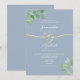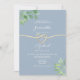 Celebre o seu amor com este convite de casamento elegante em verde, dourado e azul poeira. Com um fundo suave azul poeira, sotaques delicados de verde em aquarela e um charmoso design de coração dourado, este convite é perfeito para casais que buscam uma celebração romântica e inspirada na natureza. Personalize facilmente com os seus detalhes.