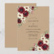 Uma rica cascata de profundas flores borgonha e creme suave evoca um romance opulento e outonal. Folhagem verde exuberante se entrelaça com arranjos florais pictóricos, criando uma atmosfera sofisticada e encantadora. Este design captura um sentimento caloroso, convidativo e profundamente romântico.