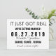 Um convite de casamento engraçado "Acabou de ficar real" para salvar a data.