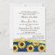 Convite de Girassol do País com fundo azul marinho acentuado com um arco amarelo bonito. Estilo elegante e romântico impresso design. Mude o texto de acordo com as suas próprias necessidades. Sinta-se livre para entrar em contato comigo para obter opções adicionais de design e cor. Todas as partes deste convite são impressas. Nenhuma fita ou arco real está anexado.
