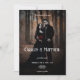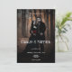 Esta design apresenta a sua bela fotografia centrada numa camada transparente de luz, escura e ensopada, criando um centro misterioso para a sua fotografia pessoal. A escolha da fonte é vintage e elegante. A parte de trás é um carvão macio preto com um monograma das iniciais do casal. Esta design funcionará para casamentos formais e casuais. Criado pela imprensa simplesmente de farmácia.