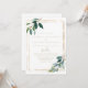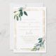 Este convite de casamento espanhol de eucalipto geométrico em ouro é perfeito para um casamento rústico. A design apresenta uma folhagem verde de eucalipto que enrola uma estrutura geométrica dourada.