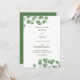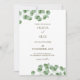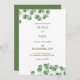 Eucalipto russo verde elegante convite para casamento estético Este convite simples e elegante de casamento apresenta lindas galhos de folha de cor d'água eucalipto e foi emparelhado com uma caligrafia caprírica e uma fonte serif elegante em ouro e cinza. Para fazer alterações avançadas, selecione a opção "Clique para personalizar mais" em Personalizar este modelo.