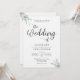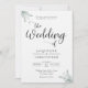 O design de convite de casamento chic apresenta um buquê de aquarela eucalipto verde e um elegante conjunto sofisticado de fontes.