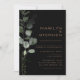 Este convite de casamento de eucalipto mínimo formal preto é perfeito para elogiar um casamento rústico. O design apresenta uma folhagem verde de eucalipto com aquarela em fundo preto.