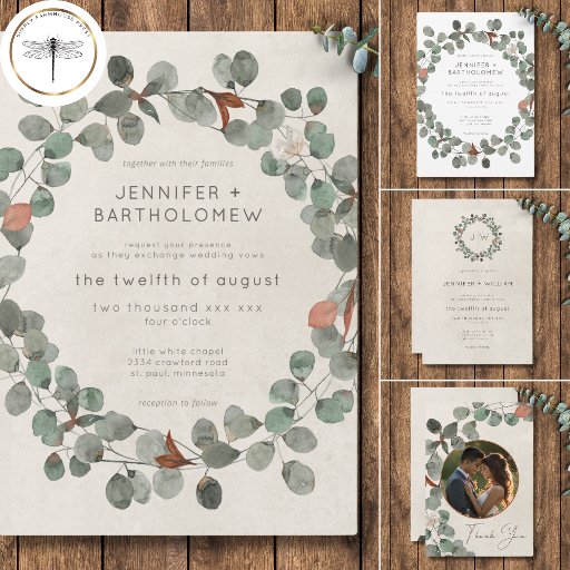 Convite Casamento Eucalipto Wreath Verde Mínimo