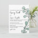 O Convite para Casamento Eucalyptus com Aquarela Whimsical é uma escolha maravilhosamente única para o seu casamento de primavera ou verão. Adorado com delicadas folhas de cor d'água eucalipto de arte-line em cascata ao longo do lado direito, este convite mostra uma caligrafia moderna que acentua os detalhes essenciais de seu dia especial.
