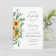 Este elegante convite para o casamento floral apresenta um buquê de aquarela de girassóis amarelos e laranja e eucalipto verde. O texto personalizável combina manuscrito, copperplate e fontes itálicas em cinzas verdes e carvões em fundo branco. O reverso é um verde sólido e coordenado. Ideal para um casamento outono rústico ou de quintal!