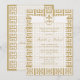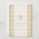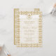 Anuncie o seu casamento ou outro evento com uma elegância ousada com estes convites de Casamento Evento Chave Grega Fleur de Lis Dourado Branco. Um símbolo atemporal de Fleur de Lis branco assenta sobre um fundo branco semi-transparente através do qual o padrão dourado e branco da Chave Grega é apenas visível. Personalize a frente e o verso com as suas informações usando o modelo. Clique em personalizar para fazer alterações à fonte e à colocação do texto.
