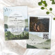 Apresentando um convite de casamento personalizável com belas montanhas pintadas com sereno e aquarela, florestas e fundos do lago. Esta design é perfeita para casais que planejam um casamento russo ao ar livre perto do lago ou de um rio, ou para aqueles que estão tendo um casamento de destino em um local cênico. O convite apresenta uma mistura de fontes elegantes e modernas de serifa e sans serif, dando-lhe um olhar sofisticado mas contemporâneo. O convite também inclui uma foto personalizável do casal no verso. Este toque pessoal tornará seu convite ainda mais especial e memorável. Além disso, este convite amigável inclui as informações do seu site de casamento e um código QR para RSVP, fazer que seja fácil para seus convidados responder e acompanhar seus detalhes de casamento.