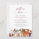 Convite de Casamento Fall In Love. Celebre as festividades de outono com abóboras pintadas à mão em aquarela, flores de outono em burgundy e terracota, botânicos em verde floresta e ferrugem, e caligrafia manuscrita em burgundy. Deixe-nos ajudá-lo a tornar o dia do seu casamento ainda mais especial com este lindo convite.