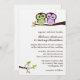 Os convites lunáticos e doces do casamento caracterizam uma ilustração adorável de duas corujas românticas empoleiradas em um ramo de árvore.
