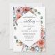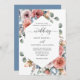Convite Casamento Feliz Floral Dusty Azul e Blush