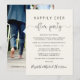 Convite de casamento ou anúncio de casamento discreto e elegante, em tom creme claro, para informar familiares e amigos que você fugiu para se casar ou reduziu o número de convidados em seu casamento, e para convidá-los a uma recepção de casamento ou festa de celebração. Na frente, "Festa do Felizes para Sempre" está escrito em uma mistura de tipografia simples e uma escrita elegante com floreios, e você pode personalizar sua mensagem e convite com mais detalhes e seus nomes em uma escrita com estilo de assinatura. O verso apresenta sua foto de casamento favorita, seus primeiros nomes e a data do casamento.