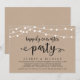 Lindas Luzes de Corda de Fazenda Rústica Moderna, fonte Script preta em Fundo de Papel Kraft, Anúncio de Fuga de Casamento, cartão de convite (Festa Feliz para Sempre). Isso é perfeito para o seu casamento e festa de celebração pós-casamento. Adicione seus detalhes na fonte / letra correspondente.