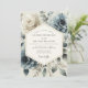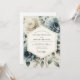 Evoque um romance eterno com este elegante design pictórico. Ricas dahlias azuis ardósia empoeiradas e rosas ivory cremosas florescem suavemente contra um pano de fundo de verde desbotado. A composição artística suave cria uma atmosfera sofisticada e sonhadora para sua celebração de núpcias.