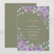 Delicadas flores de lavanda e folhagem de sage suave criam um ambiente suave e romântico. Este design pictórico evoca um senso de elegância natural, perfeito para uma celebração de primavera. A composição aérea com texturas de aquarela sutis traz um charme caprichoso.