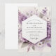Adote uma estética suave e romântica com este design floral etéreo. Aglomerados delicados de flores de lilás e lavanda em aquarela se misturam com flores brancas suaves. Folhagem verde suave adiciona um toque de graça natural, criando uma atmosfera sonhadora e pictórica para o seu dia especial.