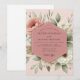 Evoque um sentimento de romance atemporal com este design artístico elegante e delicado. Apresenta uma bela composição de rosas cor de blush suave e anemóna cremosa branca, renderizada em um estilo pictórico suave. Murmúrios de folhagem verde sálvia suave completam a composição, colocada contra um fundo pastel suave para um evento verdadeiramente sonhador.