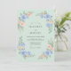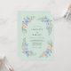 Este design apresenta um cenário sereno em verde menta decorado com delicados arranjos florais em aquarela. Rosas azuis pervinca elegantes e flores de pêssego suaves são combinadas com folhagem verde exuberante para criar uma estética fresca e arejada. Esta paleta e estilo são ideais para uma cerimônia temática da natureza sazonal.