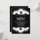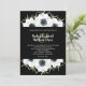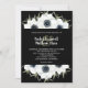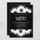 Buquê de aquarela elegante de flores e folhas de anêmonas preto e branco sobre fundo preto mostra detalhes da cerimônia de casamento em letras brancas quicas. CORRESPONDENDO a itens na nossa loja.