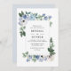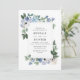 Um design floral com flores azuis e brancas adoráveis com folhagem verde. A cor e o texto podem ser editados para corresponder ao tema do casamento. você pode alterar o tamanho do texto, a fonte e o posicionamento.