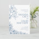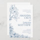 Um eterno e um convite de casamento elegante com designs florais azuis delicados, desenhados à mão, perfeitos para casamentos formais, rústicos, jardins ou de verão. Com um layout minimalista e detalhes botânicos suaves, este convite combina simplicidade e sofisticação, criando uma primeira impressão memorável para seu dia especial.