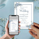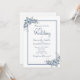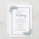 Este Convite para Casamento Azul Moderno é uma elegante escolha clássica para a noiva na moda. A redação moderna tem um roteiro de caligrafia destacando a tipografia. Para cima, ele apresenta um quadro e um fundo floral azul empoeirado.
