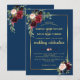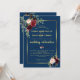 Convite Casamento Floral Azul Naval Dourado Bordô
