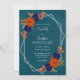 Convite Casamento Floral Azul Naval Laranja Outono Rústico