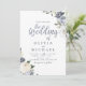 Escrito azul escuro azul escuro de núpcias de casamentos e floral botânico e verde-d'água em amarelo suave, azul poeirento, cinzas elegantes e românticas, excelente para casamento moderno, casamento romântico e casamento de jardim botânico. Veja todas as peças correspondentes na coleção.