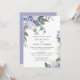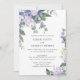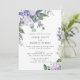 O convite de casamento chic tem um design floral de verão. As rosas brancas e as flores azuis/púrpuras estão aninhadas em folhagem verde-escura. A parte de trás do convite para o casamento é azul de córnflor. Este convite faz parte da coleção White Rose Blue Floral. Contém as modelos que você precisa para criar um belo e único jogo de papelaria de casamento. Há também cartazes e outros itens para personalizar sua cerimônia de casamento e sua recepção.