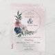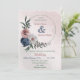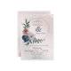 Bonito convite botânico para casamento, com flores azuis cor-de-rosa, branca e marinho, com folhas verdes num círculo verde formando uma bonito coroa romântica. É adequado tanto para os convites para o casamento como para o noivado. PARA MAIS PRODUTO CORRESPONDENTE, clique na coleção acima ou entre em contato comigo.