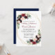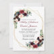 Convite Casamento Floral B da Borgonha Azul Dourada Geomét