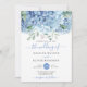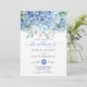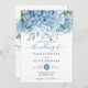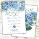 Hydrangeas azuis, convite de casamento floral. Personalize nomes, datas e informações.