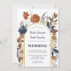 Um belo convite para o casamento floral com tipografia e fontes modernas. Edite facilmente o modelo para a noiva e o nome do noivo e os detalhes do casamento. Convite Floral de Casamento Azul Terracotta. A cor da fonte é Hex 2B324B.