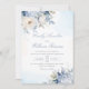 Convocação para Casamento Floral de Boho, Cor Azul, Elegante Moderno