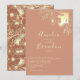 Entre num mundo encantador de elegância boho moderna com o nosso convite de casamento chique em terracota e dourado. Adornado com renda floral dourada e personalizado com as iniciais do seu monograma no canto direito, este convite exala sofisticação e charme.