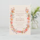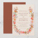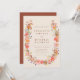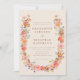 Convite de casamento floral de outono em laranja queimada com coroa de flores silvestres boho com tipografia marrom terracota elegante em fundo bege