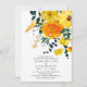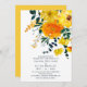 Os Convites Florais Botânicos Elegantes de Amarelo Amarelo apresentam um buquê lindo de flores laranja e amarelas com eucalipto e verde em fundo branco. Abaixo está sua informação personalizada sobre o casamento. Simplesmente personalize editando o texto nas caixas de texto fornecidas. Projetado para você por ©Evco Studio www.zazzle.com/store/evcostudio