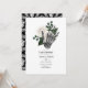Convite de noivado de casais com esqueleto gótico floral vintage caprichoso em tons de branco personalizável para os detalhes do seu evento. Ideal para qualquer tema ou casamento de jardim.