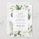 Inverno Verde Botânico White Floral Invitation White Botanicals é uma coleção de muitas flores brancas luxuosas de inverno, incluindo rosas brancas e pequenas flores selvagens com galhos e folhas verdes graciosos. Esta coleção é baseada em cores claras e verde! Perfeito para casamentos no inverno e outras estações de casamento se você está planejando um casamento branco elegante com decoração de folhagem verde e toque de romance branco. Flores são clássicos do eterno que nunca sairão do estilo. Envie-me uma mensagem se precisar de ajustes
