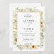 Mande um belo convite para casamento com seus belos e quentes Convites de Casamento Floral Elegante Branco e Amarelo.