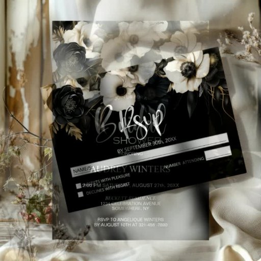 Convite Casamento Floral Branco e Negro Moderno